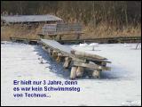Früher musste eine Fachfirma teuer beauftragt werden oder man versuchte es mit eingeschlagenen Pfählen. Einige spülten mit einer Lanze und einer Feuerwehrpumpe die Pfähle ein. In den seltensten Fällen wird auf gründungsfähigen Boden (z.B. Sandschicht) geachtet. Doch das Spülen von Pfählen hat auch seine Tücken, denn das Loch wird größer als gebraucht und Schlamm und Schwebstoffe legen sich locker in den Spalt. Richtig ist das Rammen in ausreichender Tiefe in gründungsfähigem Boden. Aber das ist nur mit schwerer Technik zuverlässig möglich. |