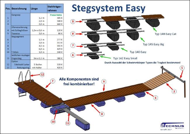 Der Gehbelag kann bei dem Easy-System in der Breite von 0,8m bis 1,2m ausgelegt werden. Zur Lagesicherung des Belages können seitliche Arretierungen vorgenommen werden. |